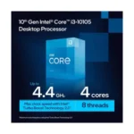The Intel 10th Gen Core i3-10105 is a budget-friendly desktop processor built on the Comet Lake architecture. With 4 cores and 8 threads, it delivers excellent performance for everyday computing, office productivity, and light gaming. Running at a base clock of 3.7GHz and reaching up to 4.4GHz Turbo Boost, the i3-10105 ensures smooth multitasking and fast responsiveness.