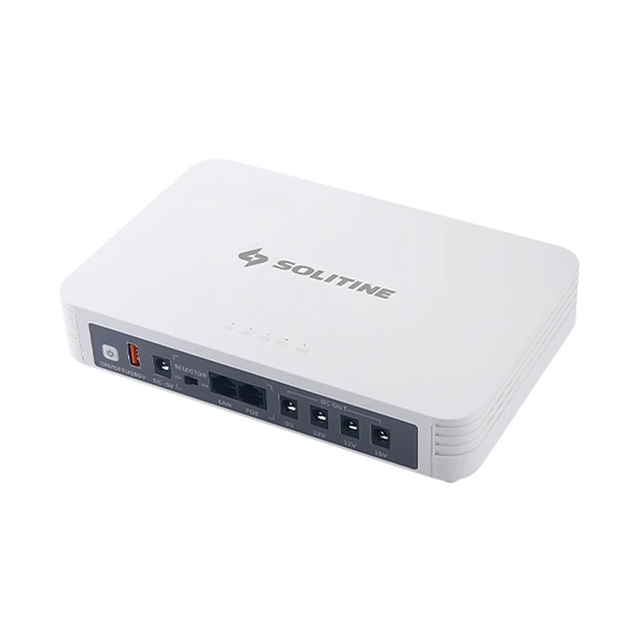 The SOLITINE SOL-700BS Mini DC UPS is a powerful 20,000mAh backup solution designed to keep your essential devices running during power outages. Featuring multiple DC output voltages, Bluetooth connectivity, and a built-in speaker, it combines reliable power backup with entertainment and portability—perfect for routers, ONU, CCTV cameras, and smart devices.
